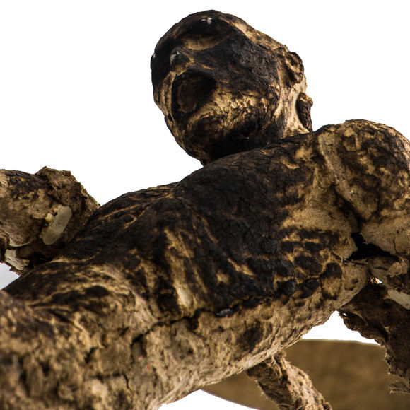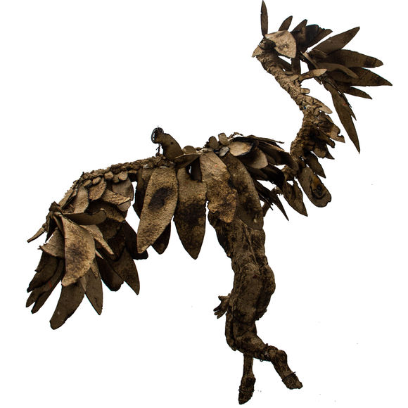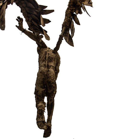 This sculpture of the fallen angel invites reflection on themes such as loss, transformation, and the fragility of the human condition. Through the combination of burnt materials, the artist evokes a sense of tragedy and resilience, highlighting the process of fall and rebirth that can occur in life.