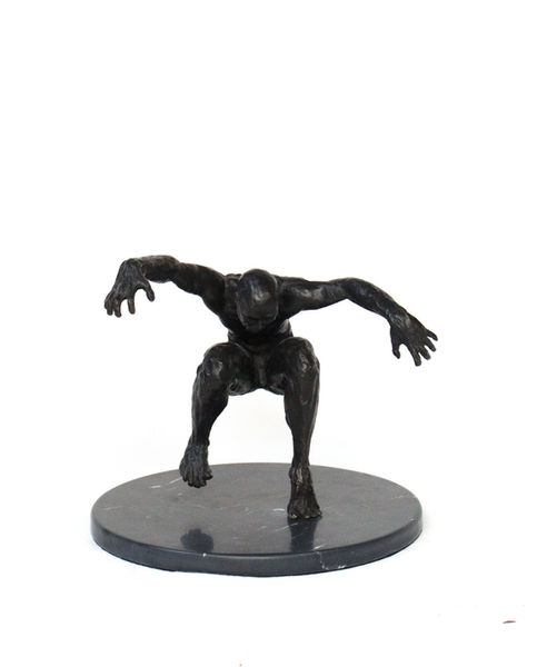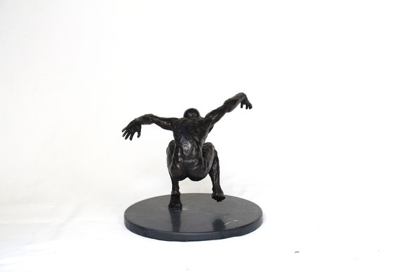The artist skillfully portrays the human form with meticulous attention to detail, emphasizing the tension in the muscles and the subtle balance of the body. The sculpture conveys a sense of both physical and emotional readiness, as the man's posture reveals a mixture of determination and apprehension.